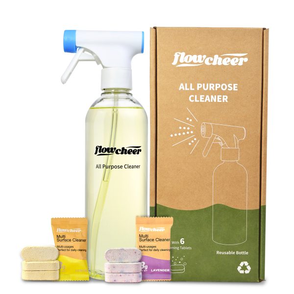 Say goodbye to harsh chemicals and bulky plastic bottles—this all-purpose cleaning kit is designed for convenience, sustainability, and efficiency. Simply dissolve a biodegradable cleaning tablet in water using the durable, reusable spray bottle, and enjoy a powerful cleaning experience across multiple surfaces.