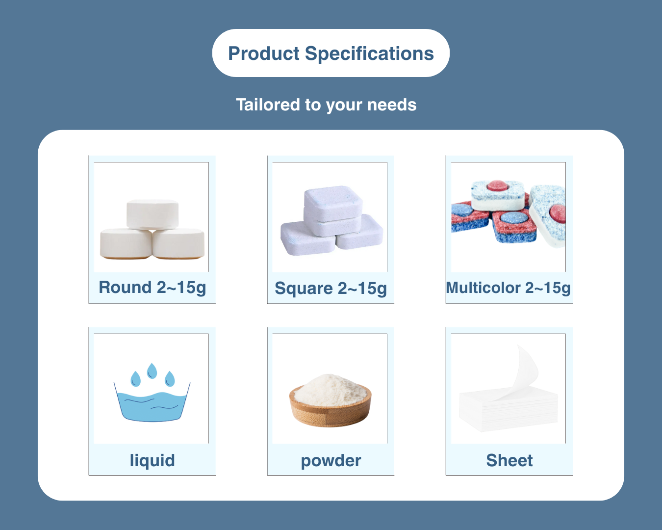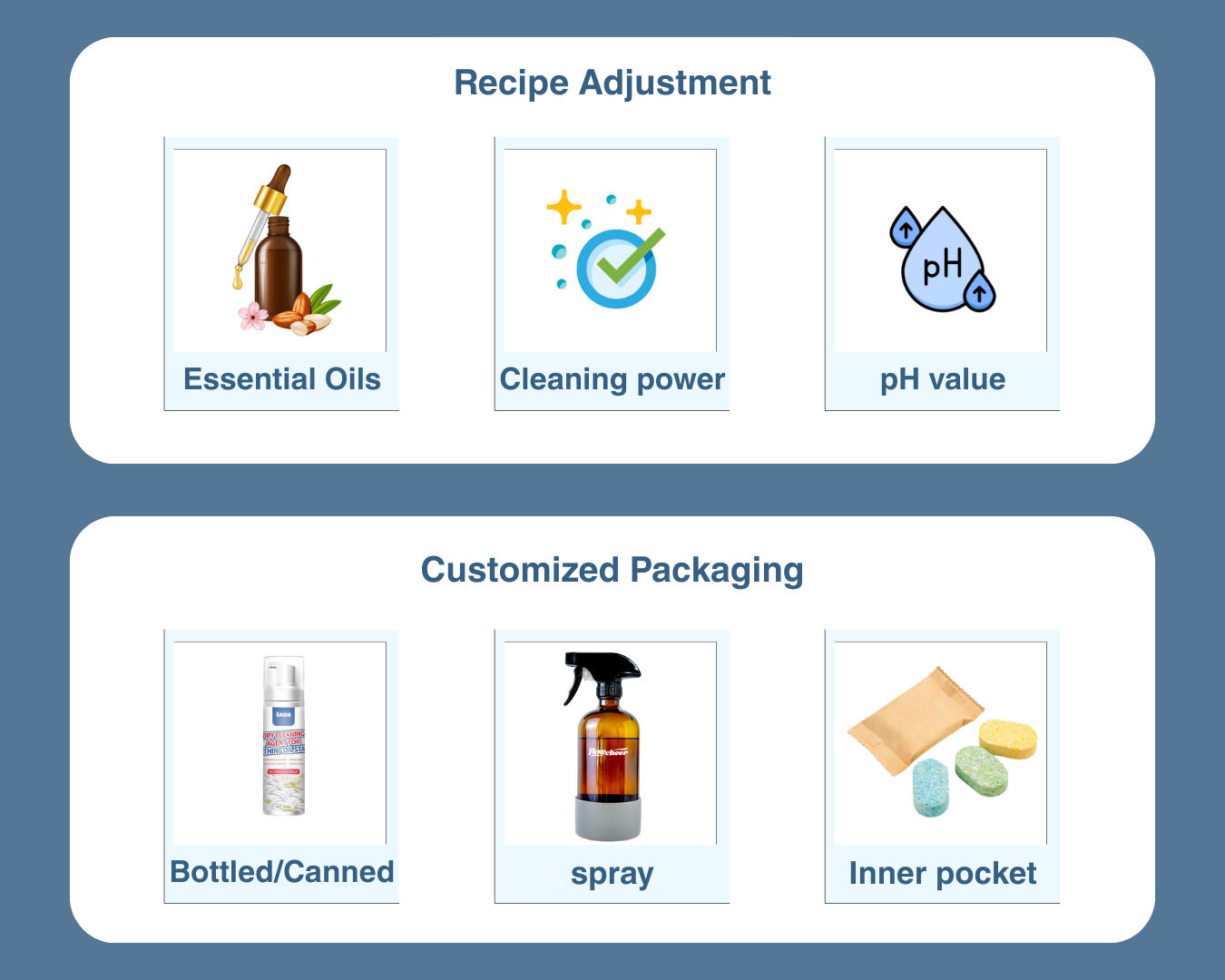 Our mainly products including like laundry detergent, kitchen cleaner, toilet cleaner, shoes cleaner, washing machine cleaner, drain cleaners, pet cleaning products.